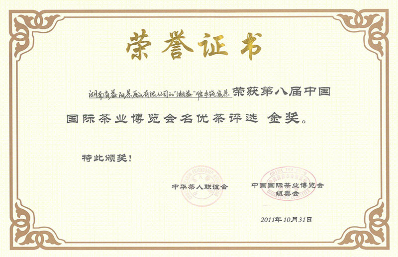 第八屆國際茶博會金獎(手筑官茶)