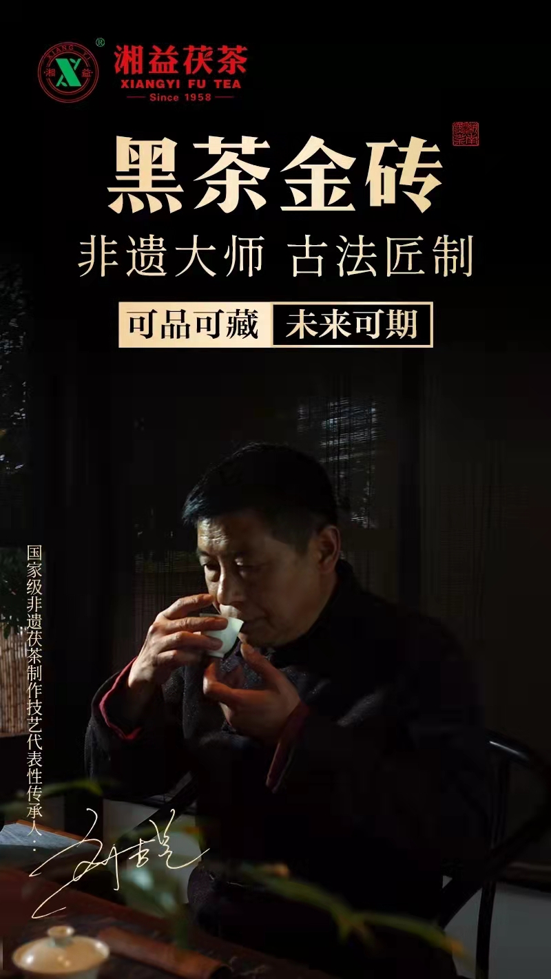 如果說拼配是大眾的狂歡,那么純料是極少數(shù)人的奢侈追求。而要成為一款優(yōu)質的純料茶,原料必然也是奢配。【黑茶金磚】甄選雪峰山脈核心產區(qū)高海拔鮮嫩芽頭一口料制作,是目前湘益所有產品體系中原料等級較高的產品之一。源自黃金產茶帶的金芽玉葉,歷經歲月風霜,汲取天地之粹,再經嫩度選采標準的精心挑選。細嫩原料通過層層篩選,去粗取精,確保茶葉勻齊。這金貴的原料,是成就【黑茶金磚】優(yōu)質品質的秘訣所在!【品質高峰 上好原料與匠心工藝珠聯(lián)璧合】【黑茶金磚】的誕生之路絕非尋常,畢竟,好茶需要“千錘百煉”!茶磚外形均勻整潔,條索清晰顯毫條,芽頭肥壯。撬開茶磚,能清晰的看到里外一口原料,葉片完整。【黑茶金磚】是非遺茯磚茶制作技藝代表性傳承人劉杏益大師不斷試制,不斷摸索出適合嫩料芽頭制作工藝的精品佳作。因原料名貴,渥堆過程中制茶大師更是精心觀察茶葉的每一點變化,確保茶湯醇厚純凈,無堆味水悶味等雜味。在保留茶品優(yōu)異品質的同時,將舒適宜人的口感特點不斷放大,讓上好原料與匠心工藝實現(xiàn)珠聯(lián)璧合,將湘益茶品品質推向又一高峰。對品藝的嚴格把控,才能造就我們手中的款款好茶!就口感而言,【黑茶金磚】足以讓人驚艷!注水入茶,香氣升騰而出,茶香、菌香層疊綻放,融于金黃透亮的茶湯之內,回味悠長。整體茶氣足,滋味醇厚,生津明顯,韻味綿長。這是高等級原料、精湛制茶技術帶來的實打實的優(yōu)越。此外,【黑茶金磚】包裝風格突破創(chuàng)新,整體以黑金為主色調,一方面與茶品名稱相呼應,另一方面凸顯茶品的尊貴與高品質。典雅端莊的黑色配上雍容優(yōu)雅的鎏金色,方寸間滲透著奢華氣息,同時配有高檔原木茶針,方便實用。取名貴原料,用精湛技藝打磨,經百年古法精制…如此匠心及好料打造的【黑茶金磚】,注定是佳品。成品數(shù)量有限,是難得的典藏級佳品。千年絲路漫漫,一碗茶香悠然。讓我們一起載著這盞茯香,一品塵封千年的秘境天香。
