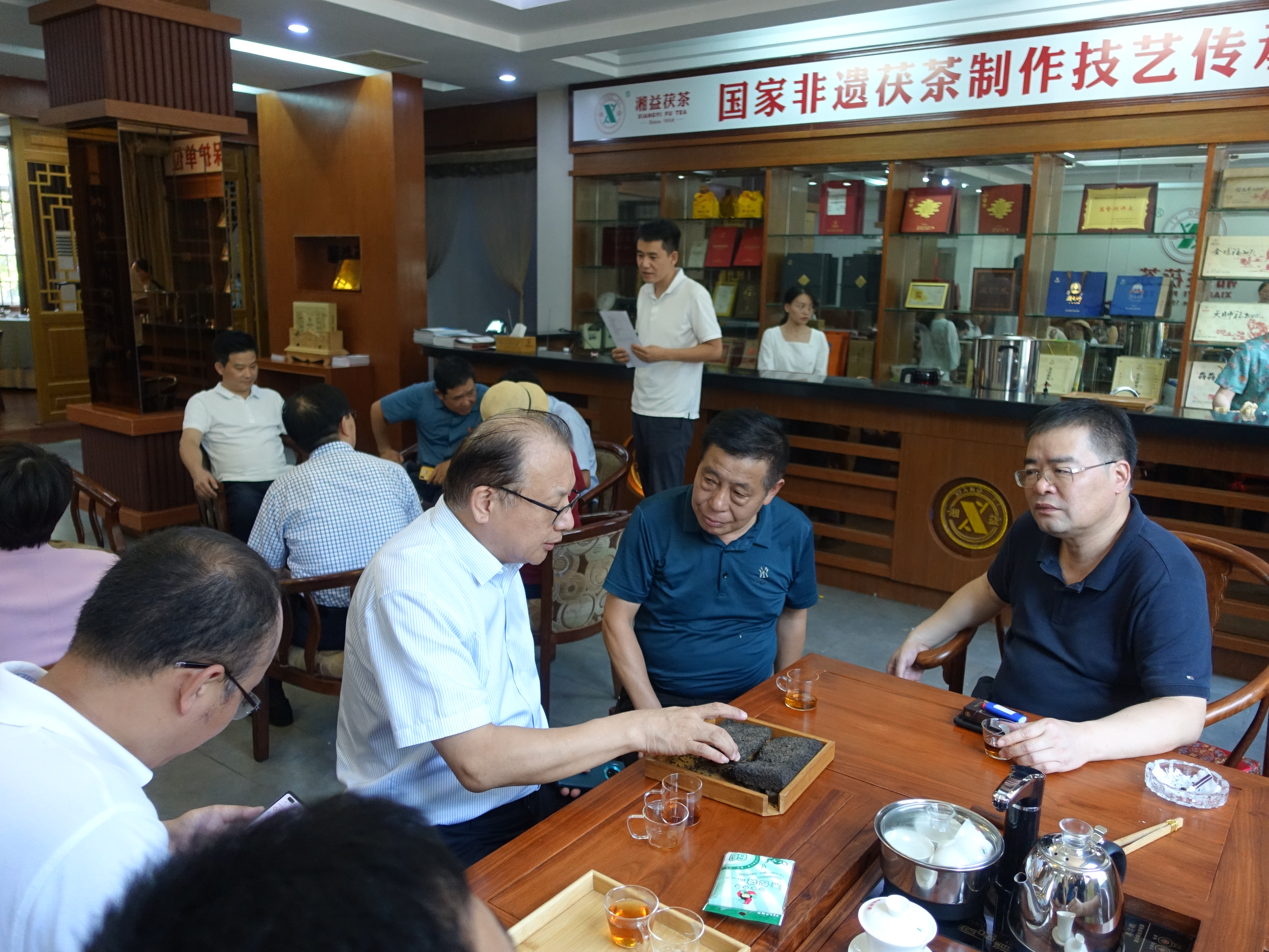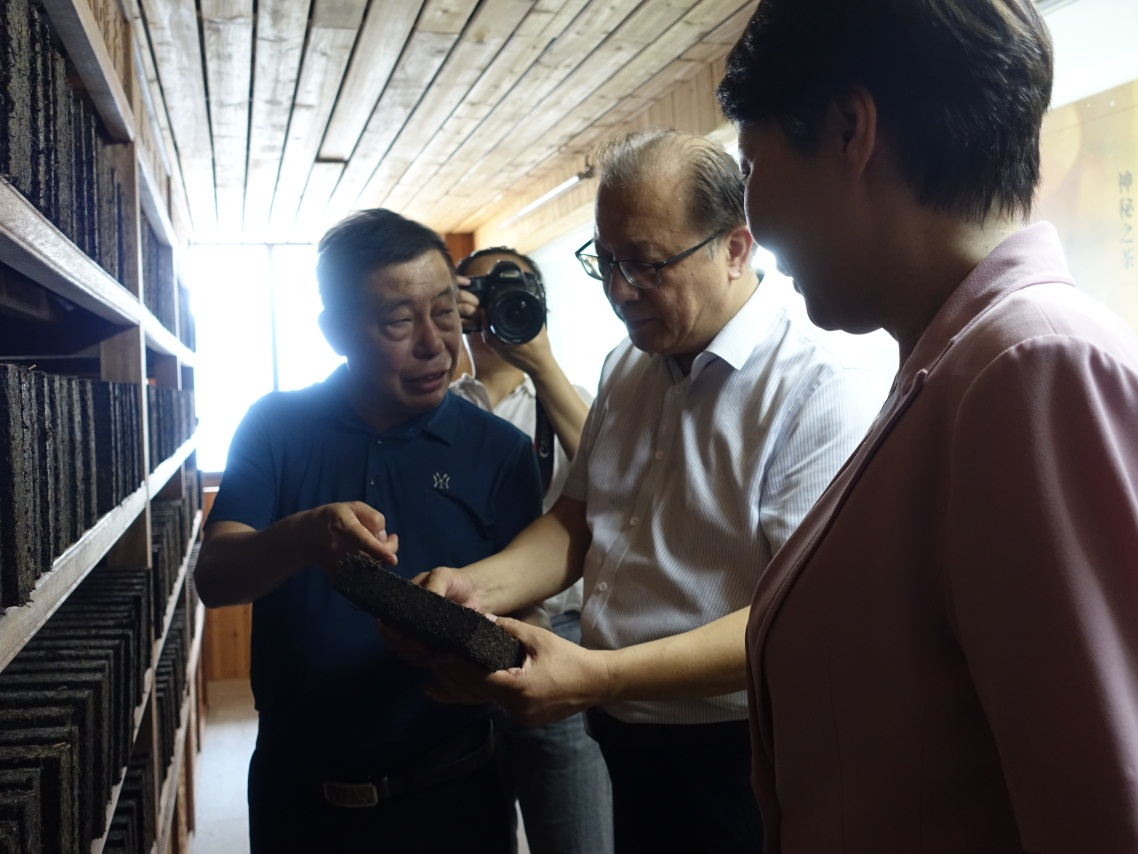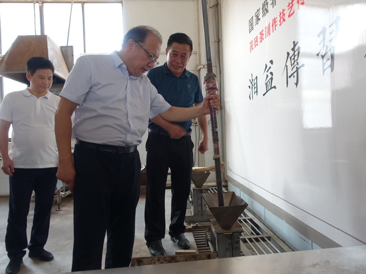 9月26日,文化和旅游部非遺司司長(zhǎng)王晨陽(yáng)、綜合處處長(zhǎng)李繪新、管理處處長(zhǎng)王暉、管理處干部李娃,中國(guó)茶葉博物館研究館員朱慧穎、中國(guó)農(nóng)業(yè)科學(xué)院研究所二級(jí)研究員魯成銀,中國(guó)藝術(shù)研究院文化戰(zhàn)略發(fā)展研究中心主任羅微,湖南省文化和旅游廳副廳長(zhǎng)張?;?、非遺處處長(zhǎng)顏喜、副處長(zhǎng)肖正湖等,到公司考察調(diào)研國(guó)家非物質(zhì)文化遺產(chǎn)茯磚茶制作技藝的傳承保護(hù)與發(fā)展情況。益陽(yáng)市副市長(zhǎng)楊智華、副秘書(shū)長(zhǎng)王國(guó)保、宣傳部副部長(zhǎng)、文旅廣體局黨組書(shū)記、局長(zhǎng)陶漢文、副局長(zhǎng)羅衛(wèi)榮、文化遺產(chǎn)科科長(zhǎng)蔡愛(ài)武等陪同調(diào)研。公司董事長(zhǎng)彭雄根、總經(jīng)理陳小春、副總經(jīng)理、國(guó)家茯磚茶制作技藝非物質(zhì)文化遺產(chǎn)代表性傳承人劉杏益等熱情接待。
