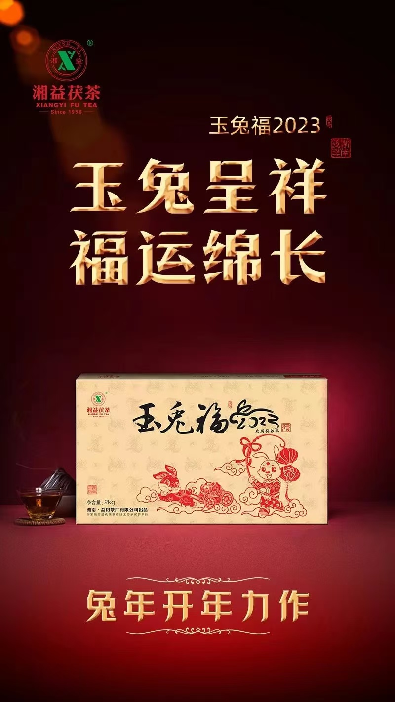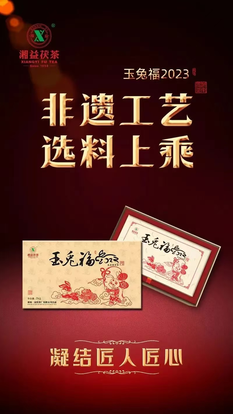 兔,明月之靈,被稱為瑞獸,是聰慧善良、家族興旺的代表,寓意長壽、平安吉祥。“玉兔福2023”以“玉兔呈祥”立意,凝聚新一年的時與運,蘊藏著湘益茯茶對兔年的理解與美好寄望,祈愿兔年大吉、前途似錦、福運綿長。精選雪峰山脈核心產(chǎn)區(qū)一級黑毛茶,條索緊結(jié)肥壯、嫩度高,內(nèi)含物質(zhì)豐富。由國家級非遺茯磚茶制作技藝代表性傳承人劉杏益大師結(jié)合多年制茶經(jīng)驗、依古法精制而成。非遺技藝結(jié)合現(xiàn)代化制茶工藝,塑造了“玉兔福2023”茶香馥郁、層次豐富的特性。