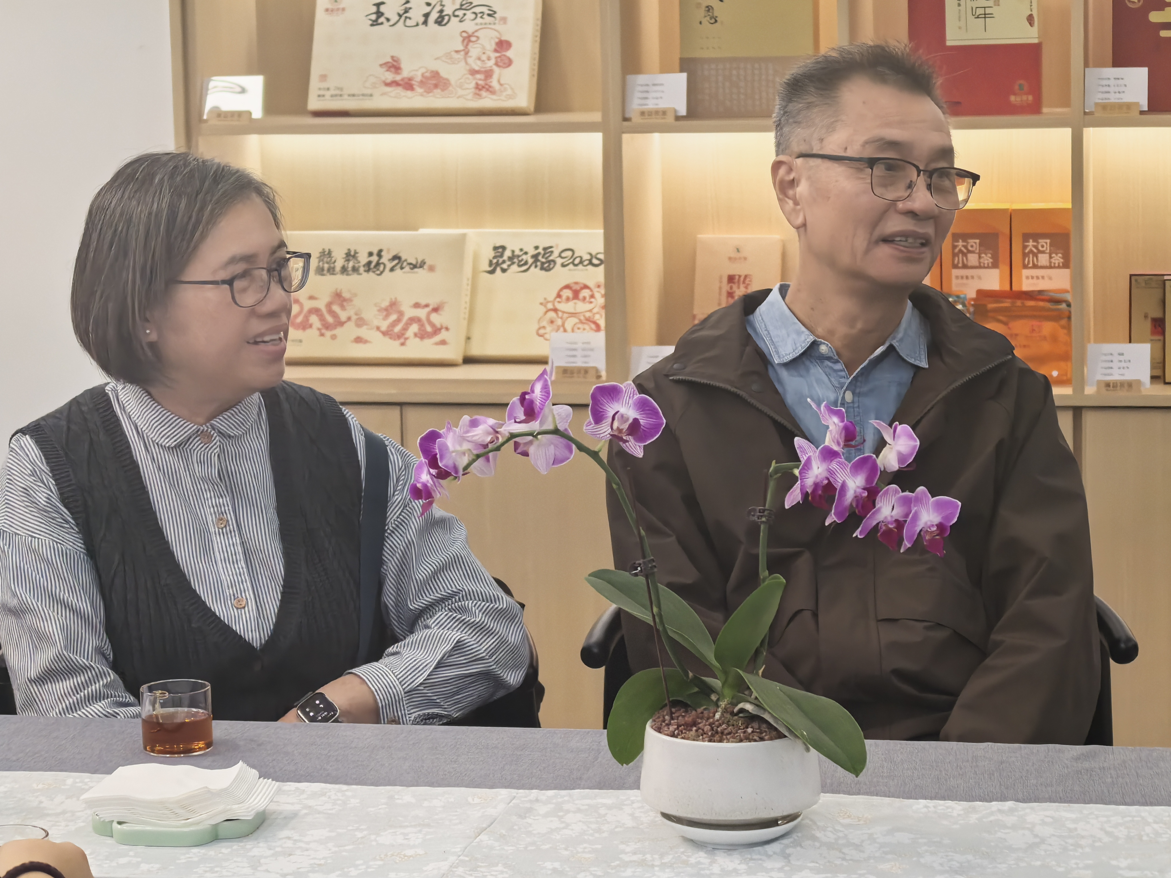 隨后,雙方移步至審評室與湘益體驗(yàn)館,在此進(jìn)行了專業(yè)的茶葉審評與深入的交流座談??腿藗儸F(xiàn)場品鑒了多款湘益產(chǎn)品,對其獨(dú)特的“菌花香”與醇和口感給予了高度評價,雙方就茶藝發(fā)展與茶文化傳播進(jìn)行了富有成效的探討。