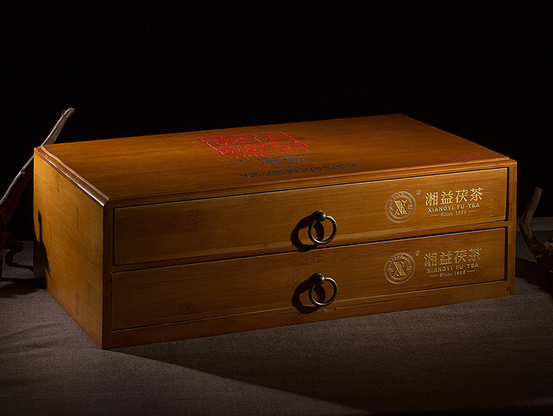 每件涵蓋機(jī)制茯磚茶和手筑茯磚茶2種茯磚茶形態(tài),每片規(guī)格為2kg ,設(shè)計(jì)匠心獨(dú)運(yùn),采用特制的抽屜式竹盒包裝,暨是產(chǎn)品包裝也可做茶葉樣品柜,每套竹盒都刻有獨(dú)立編號(hào),限量發(fā)售。