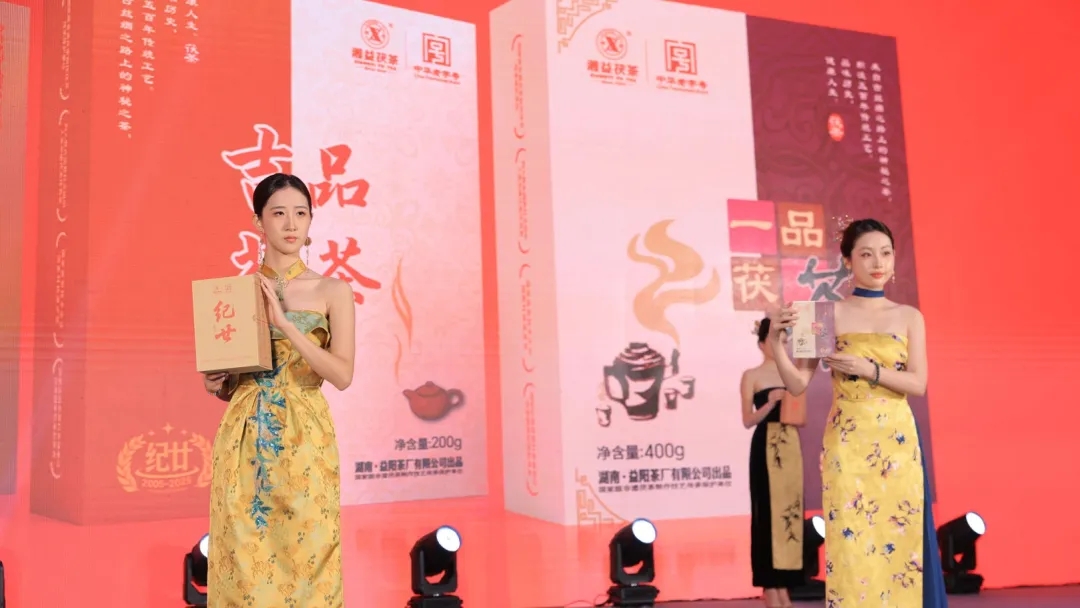在發(fā)布儀式上,與會領導和專家共同啟動推桿,隨著金沙傾瀉而下,"紀廿"新品正式亮相,象征著湘益茯茶開啟新的發(fā)展征程。隨后,一場別開生面的新品模特走秀吸引全場目光。身著典雅服飾的模特手捧"紀廿"新品,以優(yōu)雅的姿態(tài)展示這款傳承與創(chuàng)新相結(jié)合的茯茶珍品,傳統(tǒng)茶文化與現(xiàn)代時尚在此完美交融,凸顯出新品的獨特魅力。